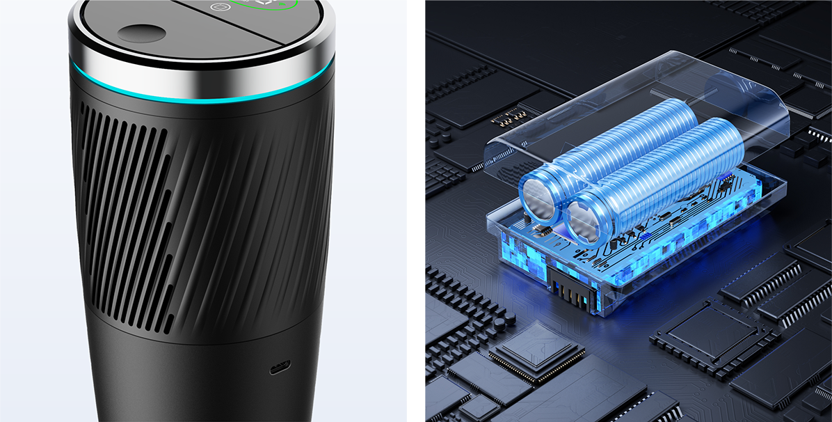 regardless of whether the vehicle is running or parked. With strong battery life and portability, it enables mobile purification.
