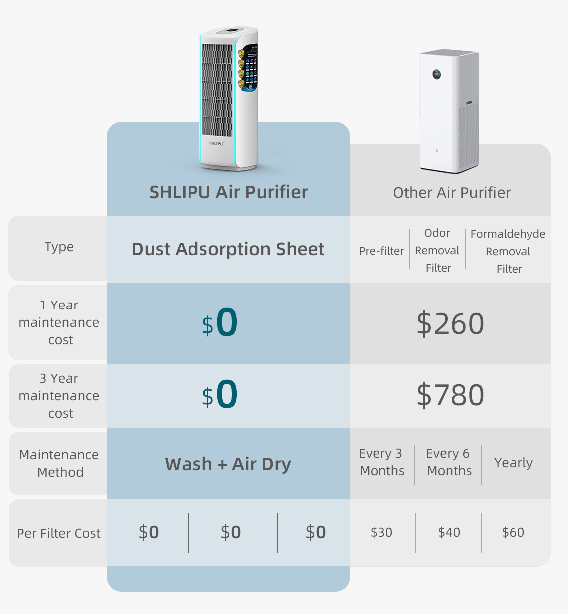 The electrostatic dust collection with micro-dust adsorption sheets allows for easy wipe-clean maintenance. It’s reusable permanently without compromising purification efficiency, eliminating the hassle of regular filter replacements—economical, eco-friendly, and worry-free.