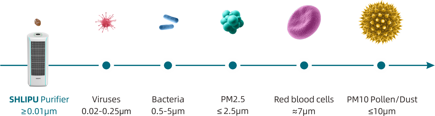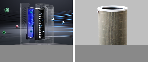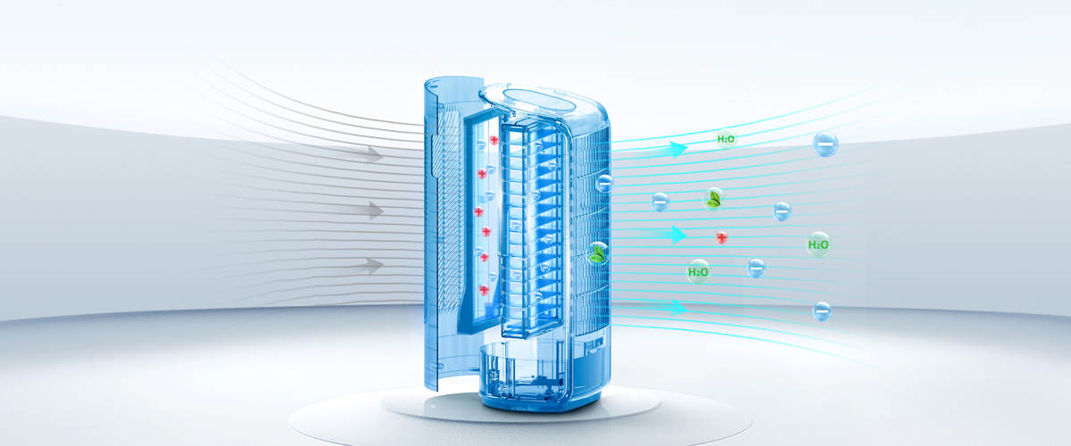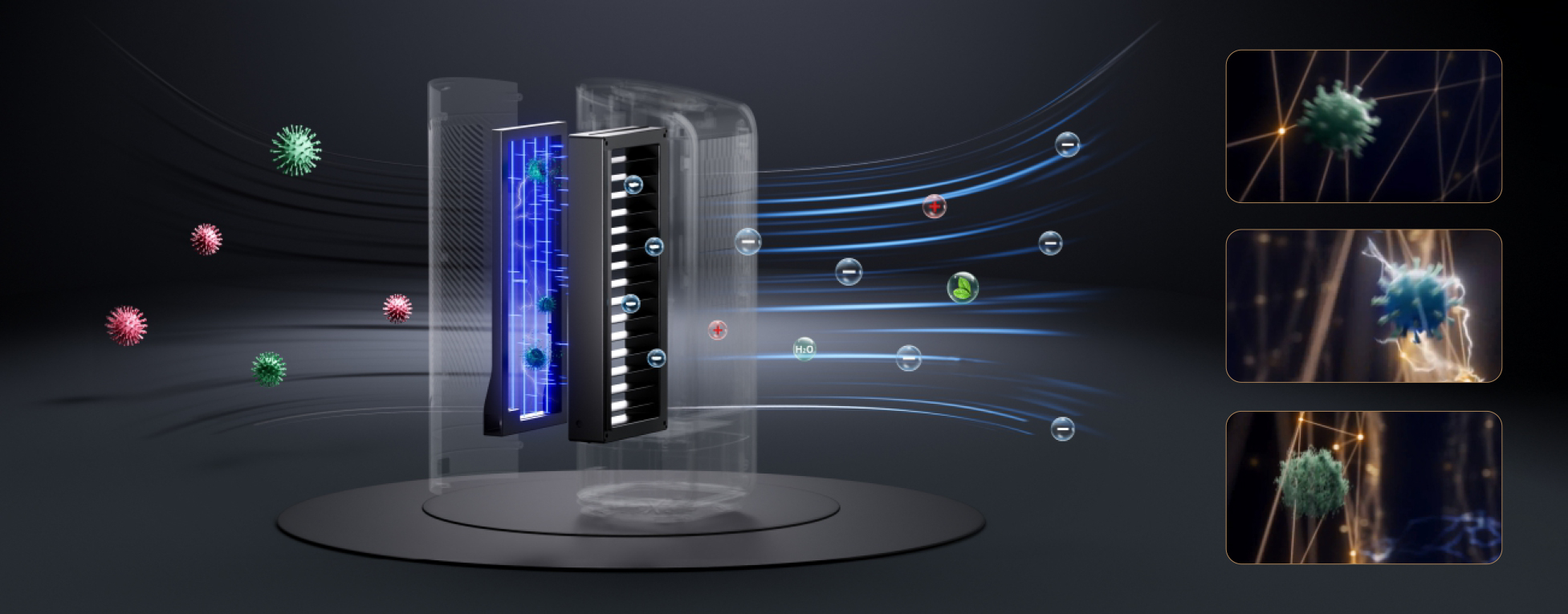 and ionic wind to efficiently purify bacteria, viruses, molds, allergens, dust, and harmful gases.