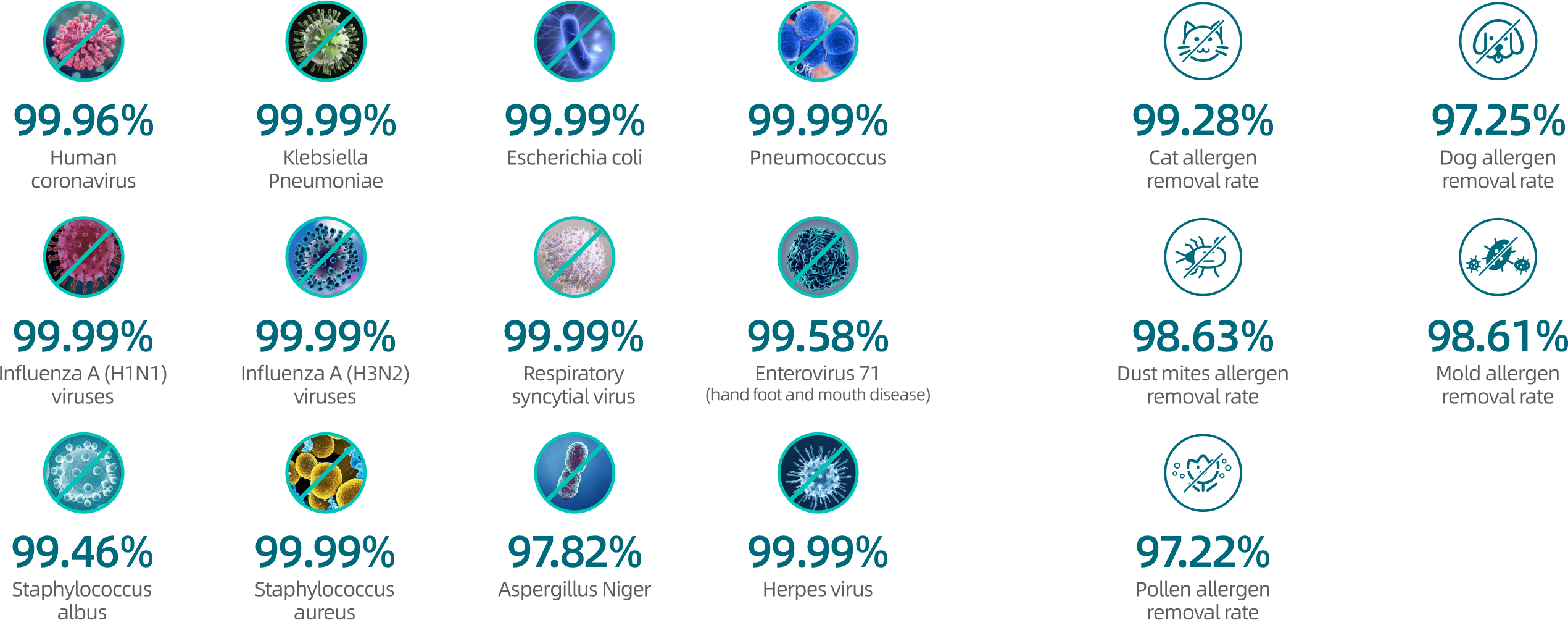 *Data sourced from Guangdong Microbial Testing Center: 1-hour removal rate in a 30m³ standard test chamber.